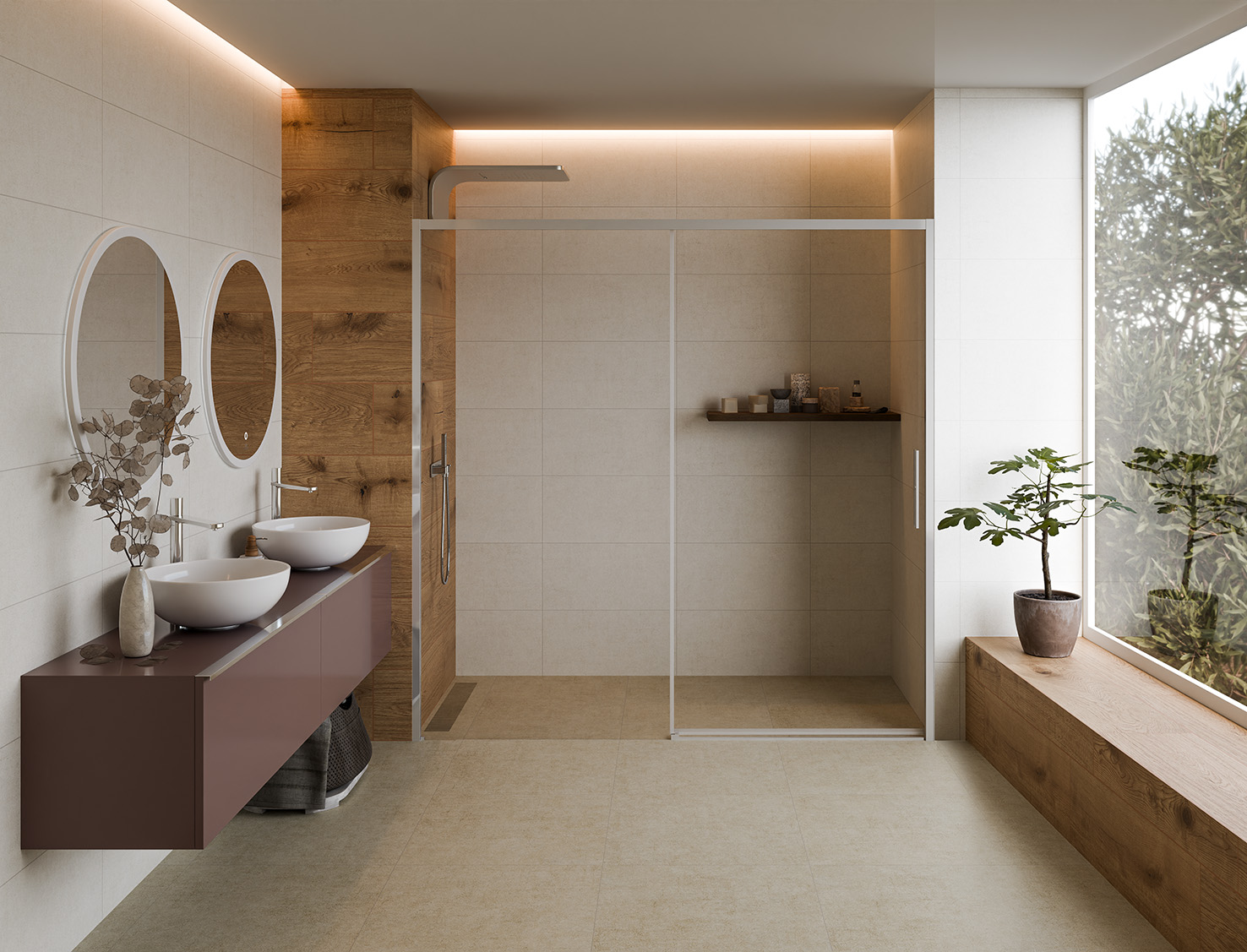 La principal característica de la ONE es su diseño igualado en todo su contorno. Esto permite que los perfiles laterales no tiengan que ir taladrados en la pared de nuestro baño. Simplemente se montan con una cinta adhesiva de altas prestaciones que evitan que tengamos que taladrar los azulejos; Con ello también evitamos posibles accidentes de perforar tuberías ocultas o tubos corrugados de corriente.